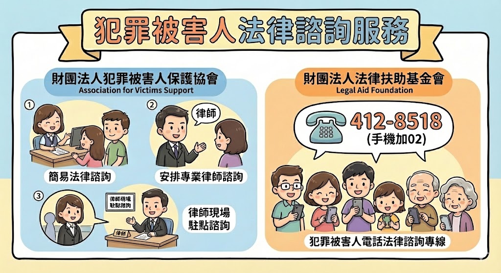 - 犯保協會分會所提供的法律協助都是免費的,若有不明人士(代辦業者或司法黃牛)與您接洽代辦事宜,請勿任意簽署文件。